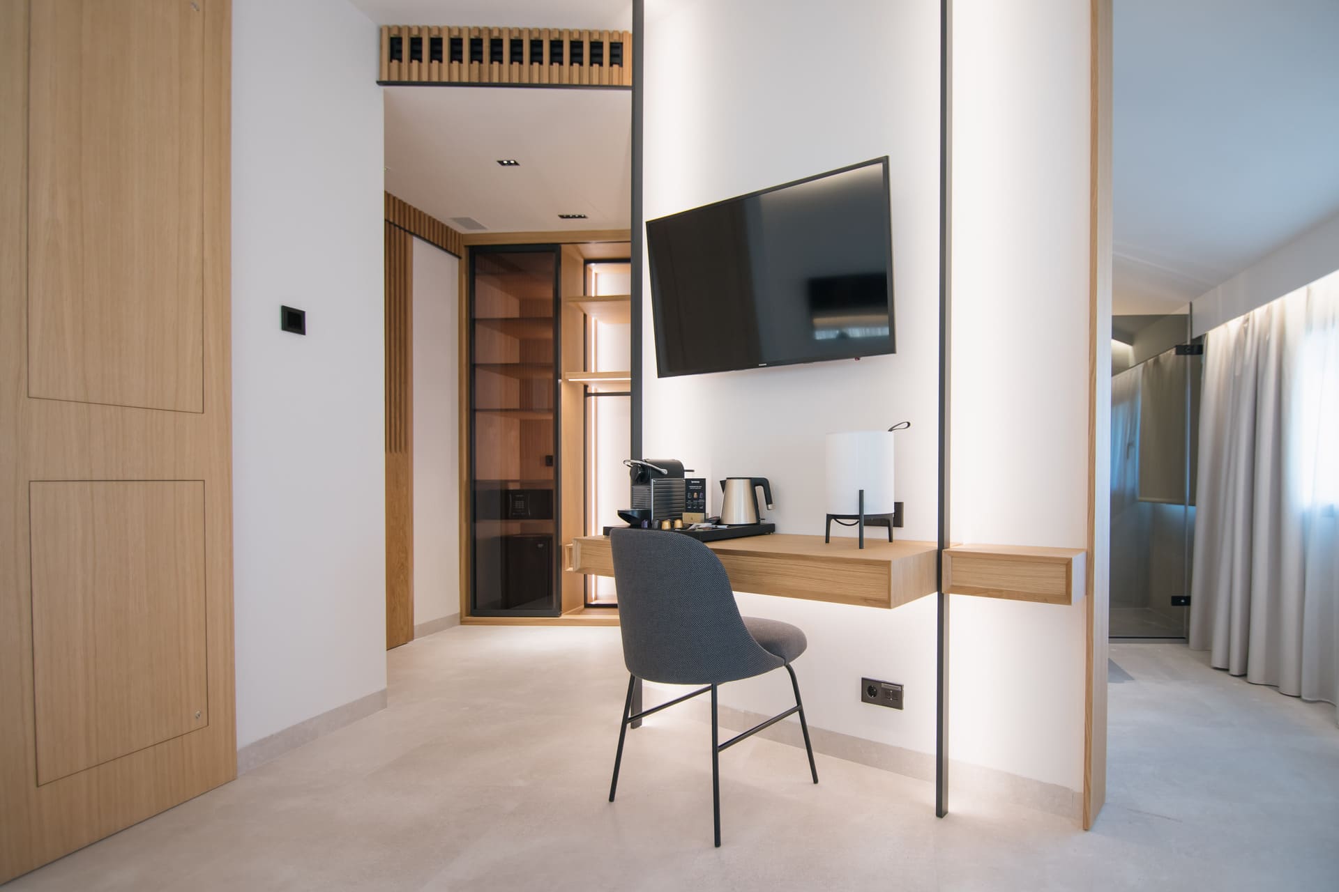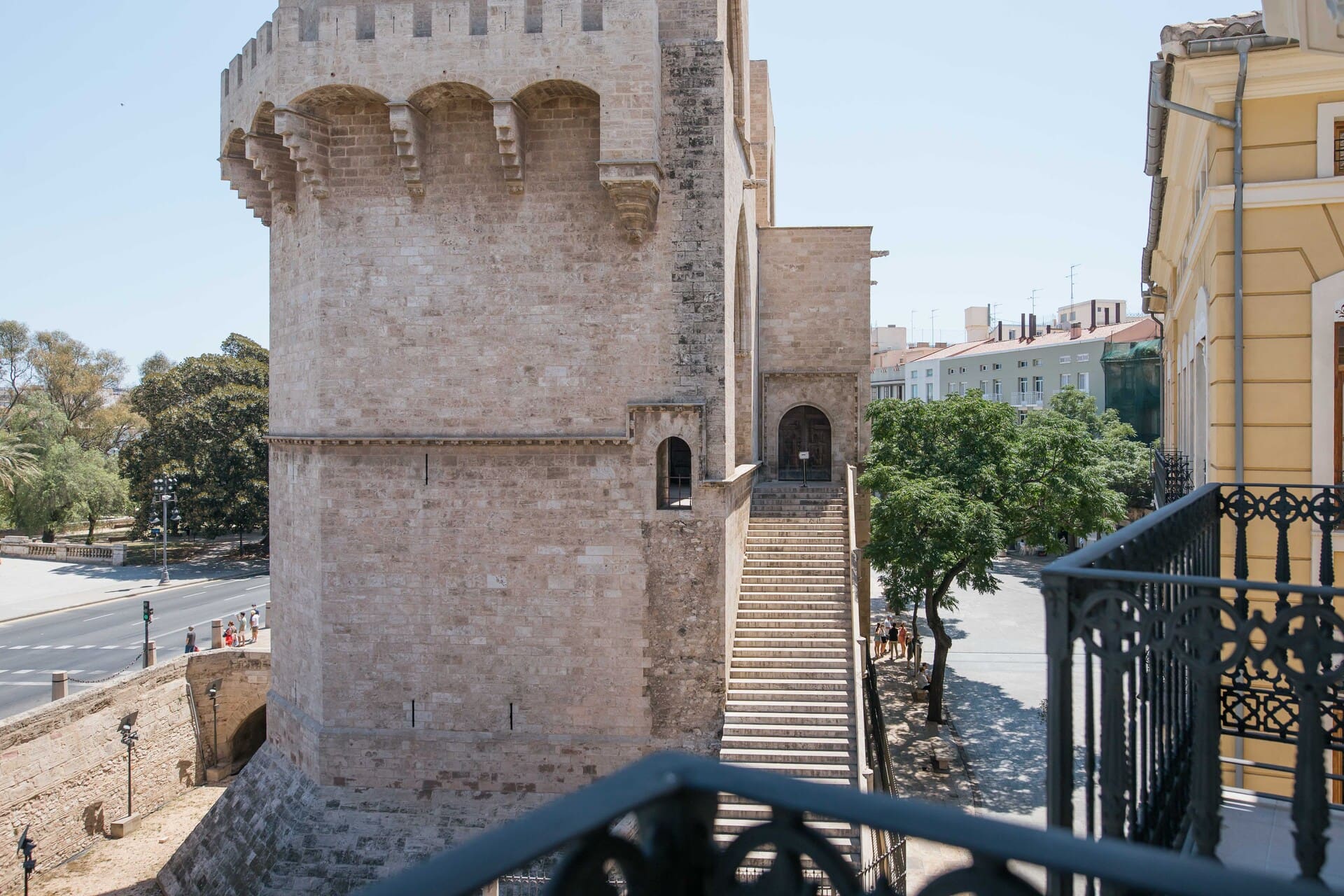 Notre Suite Junior incarne l’essence de l’Hotel Puerta Serranos : luminosité, amplitude, design et emplacement incomparable. Avec 35 m² d’espace exclusif et un lit King, cette élégante suite est parfaite pour ceux qui recherchent une expérience supérieure dans le centre historique de Valencia. Depuis ses grandes fenêtres, on profite de vues panoramiques uniques sur le centre historique, sur le cours d’eau paysager du río Turia et sur les majestueuses Torres de Serranos, ancienne porte d’entrée de la ville fortifiée. Un espace qui allie histoire, confort et exclusivité pour une escapade inoubliable.