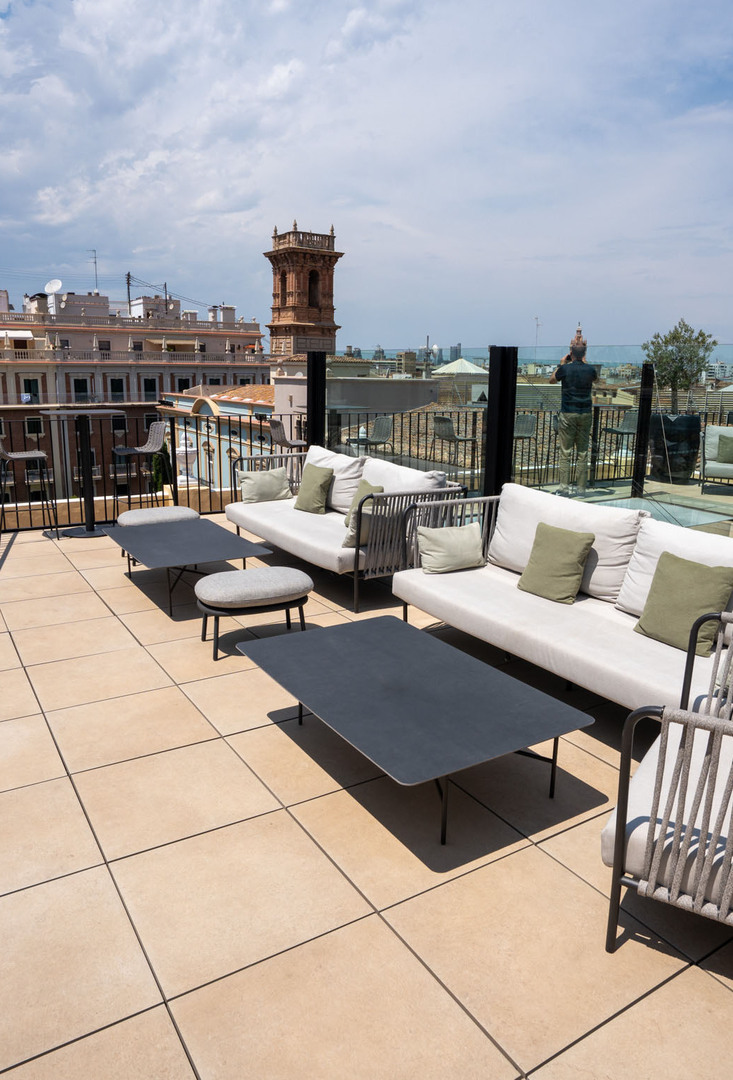 La terrazza panoramica dell’Hotel Palacio Vallier, dove i cocktail d’autore, il design e l’arte ti invitano a rilassarti, a goderti il momento e ad ammirare Valencia dall’alto.
